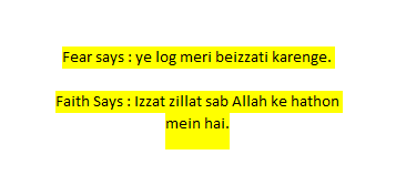kabhi aap ko izzat ka darr hone lage, to samajlo ke ab, Allah SWT ap ke Tauheed Al Asma Wa-Sifaat ka test le raha hai. Ke aap ke dil mein attributes of allah ka yaqeen hai ya logon ka darr.