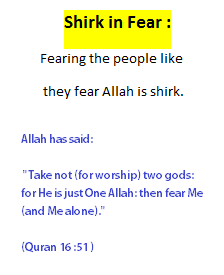 Fearing the people like they fear Allah is shirk.