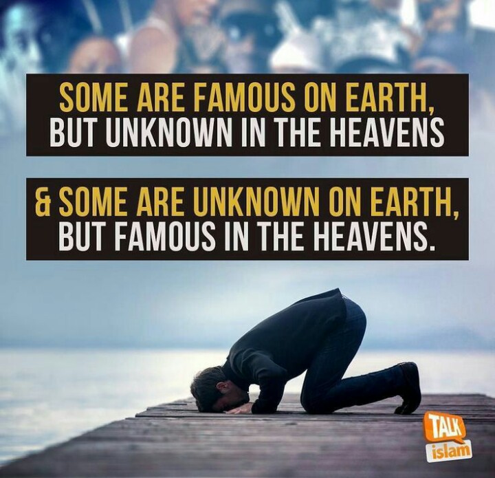 Some are famous on earth but unknown in the heaven And some are unknown on earth but famous in the heaven.